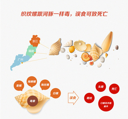 織紋螺俗稱“海絲螺”、“海螄螺”、“麥螺”或“白螺”等,主要分布于浙江、福建、廣東等沿海地區(qū),約指甲蓋大小。食用帶有毒素的織紋螺后,會引起頭暈、嘔吐、口唇及手指麻木等癥狀,甚至可能導(dǎo)致死亡。原衛(wèi)生部2012年便發(fā)布公告明確要求,任何食品生產(chǎn)經(jīng)營單位不得采購、加工和銷售織紋螺。