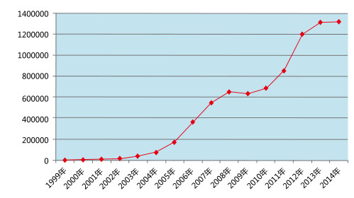 圖1 1999-2014年全國藥品不良反應/事件報告數(shù)量增長趨勢