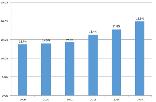圖9 2009-2014年65歲以上老年患者不良反應報告比率