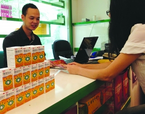 圖為消費(fèi)者在藥房咨詢障眼明片的療效用法。