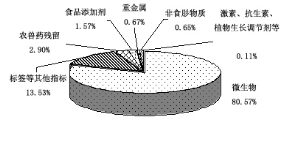 2015年,上海全市共監督抽檢各類食品樣品254540件,合格率為98.2%。根據食品抽檢結果分析,導致上海食品安全不合格的主要因素是微生物、農獸藥殘留、食品添加劑、重金屬、非食用物質、激素、抗生素、植物生產調節劑和標簽等其他指標不合格。