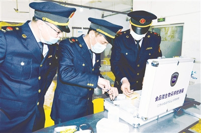 又到春季開學季。江西省萍鄉市食安辦、萍鄉市食品藥品監管部門對轄區學校、幼兒園食堂等開展食品安全專項檢查,為廣大師生身體健康把好食品安全關。據悉,此次檢查為期15天。 圖為2月14日,執法人員深入江西工業工程職業技術學院抽檢食品質量。 黃躍輝 攝