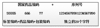 2011年2月15日,美國FDA召開了關(guān)于處方藥跟蹤與追溯系統(tǒng)的公眾研討會(huì),對SNI的應(yīng)用進(jìn)行了初次介紹。SNI是一套序列化的國家藥品編碼(sNDC)。sNDC由美國《聯(lián)邦規(guī)章典集》第21篇207部分闡述的“國家藥品編碼”(NDC)組成,是一組獨(dú)有的序列號,由標(biāo)簽編碼、藥品編碼、包裝編碼共10個(gè)字符組成。NDC由每個(gè)獨(dú)立包裝的生產(chǎn)商或分裝商生成,可保證一物一碼,并以條形碼的形式印刷在藥品包裝上,而序列號應(yīng)為數(shù)字或字母(包括數(shù)字和/或字母),不超過20個(gè)字符(字母和/或數(shù)字)。sNDC示例如圖1所示。