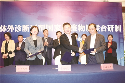會上,中國食品藥品檢定研究院、江蘇省醫(yī)療器械檢驗所、江蘇省食品藥品監(jiān)督管理局泰州市醫(yī)藥高新區(qū)直屬分局三方,簽署了《體外診斷試劑國家標準物質(zhì)聯(lián)合研制備忘錄》。這標志著體外診斷試劑國家標準物質(zhì)聯(lián)合研制工作模式正式“試水”。