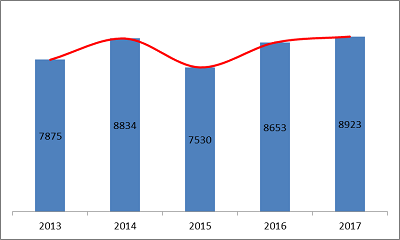 圖5.2013-2017年度注冊(cè)數(shù)據(jù)圖