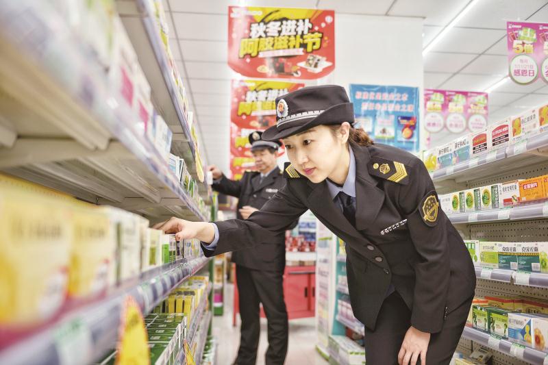 圖為寧夏回族自治區食品藥品監管局工作人員在某藥店進行現場檢查/攝影 董傳陽