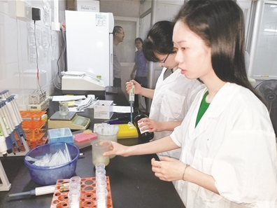 圖為環球水產品經營市場檢測中心工作人員在做貝類產品檢測,為產品質量安全把關。