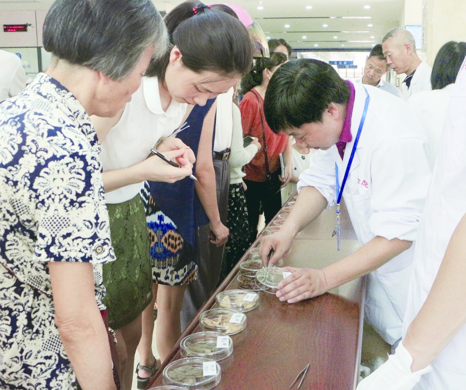 圖為活動中,專家向公眾傳授鑒別中藥材真偽的方法。王芳 攝