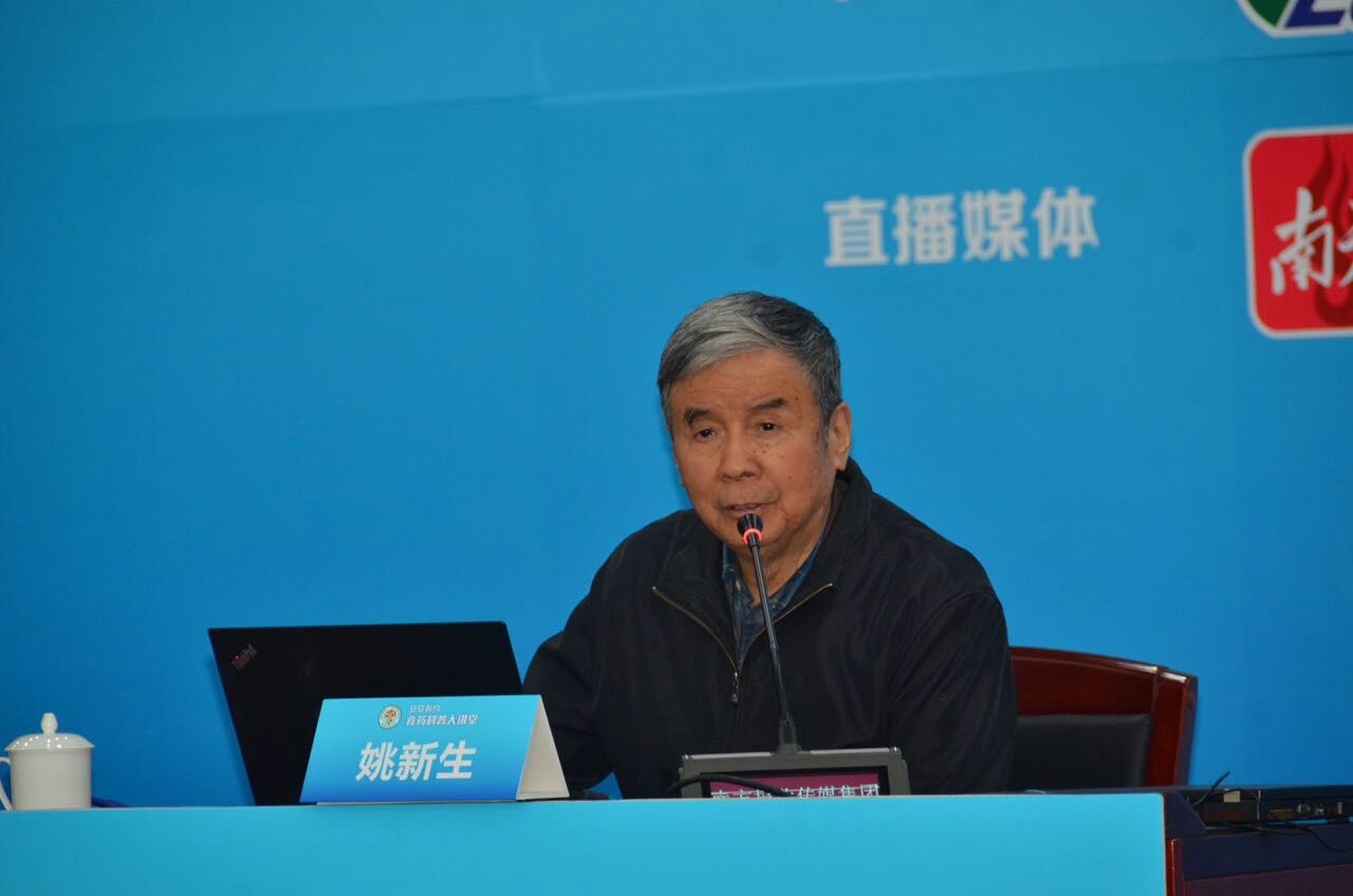本期活動特別邀請了中國工程院院士、暨南大學、沈陽藥科大學教授、暨南大學藥學院名譽院長、中藥與天然藥物研究所所長姚新生作為主講嘉賓。姚新生院士作了以《中藥復方制劑現代化及國際化的思考》為主題的專題講座,從中藥是否有毒副作用、什么樣的中藥才是真正有效、“洋中藥”療效是否更好等老百姓生活中的中藥觀念誤區進行答疑。同時,結合《神農本草經》,教授大家如何合理使用中藥及用藥須合“君臣佐使”等知識。本次講座以現場及網絡直播的形式同步進行,觀眾們通過現場及網絡提問與主講嘉賓進行互動答疑交流,現場活動氛圍濃厚。