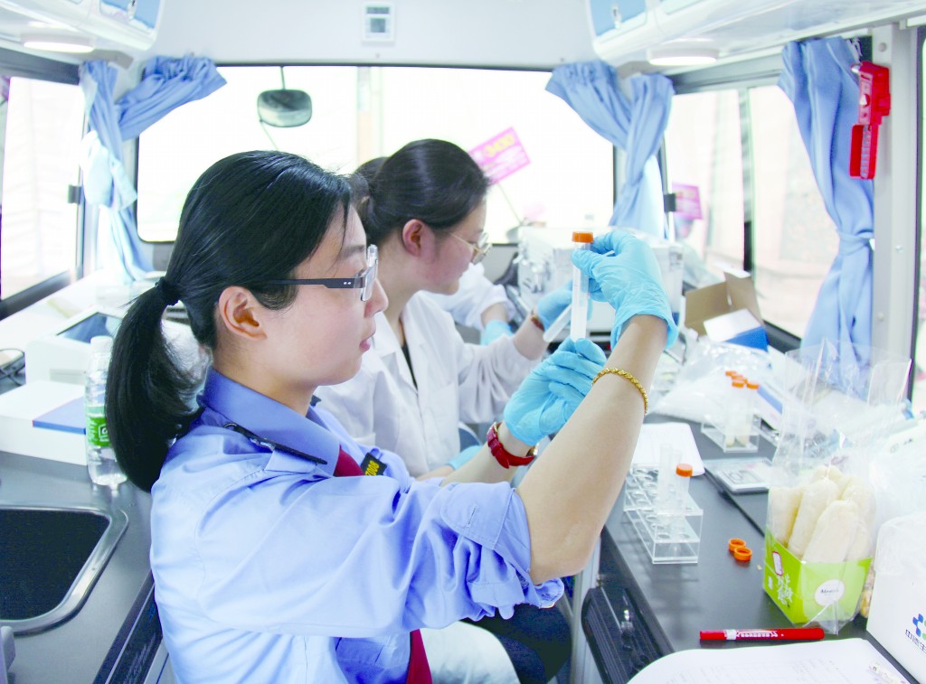 圖為江西省鷹潭市市場與質量監管局工作人員利用快檢車所載快檢設備進行食品快檢。鷹潭市市場與質量監管局供圖