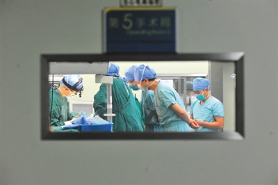 2016年6月,北醫三院正在為一名患者進行3D打印脊椎移植手術。北醫三院供圖