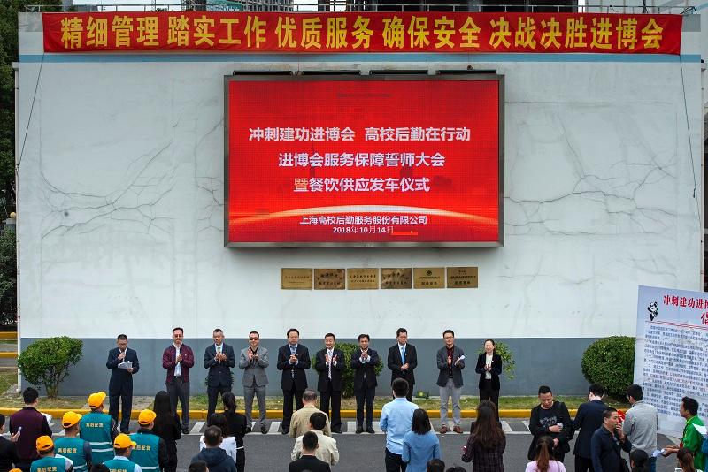 上海高校后勤服務股份有限公司舉行的進博會服務保障誓師大會現場。 盧衛平 攝