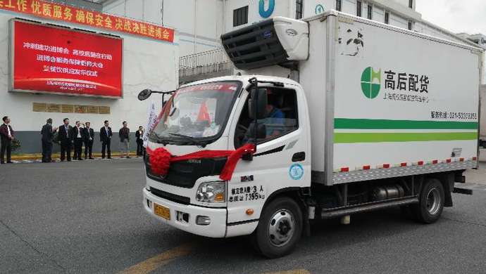 “出發——”10月14日,隨著上海高校后勤服務股份有限公司總經理陳輝的一聲令下,四輛“身披”大紅花的廂式物流車從地處寶山豐翔路的上海高校冷鏈物流基地緩緩駛出,朝著距國家會展中心7公里的光明乳業上海領鮮物流中轉總倉進發。