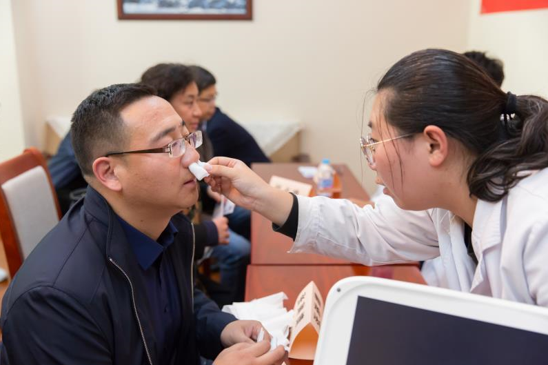 講座結束后,閆占峰主任和其團隊對參加講座的干部職工進行耳鼻喉科疾病的義診活動,共接診45人次。