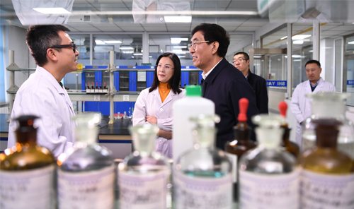 圖為巴音朝魯(左三)一行在吉林省藥品檢驗(yàn)所調(diào)研。本報(bào)記者 葉陽歡 通訊員 曹夢南 攝影報(bào)道