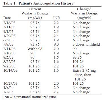 于是仔細(xì)詢(xún)問(wèn)INR不穩(wěn)定的可能原因:包括是否更換華法林廠(chǎng)家,有無(wú)誤服,飲食上有無(wú)大的變化,有無(wú)改變其他用藥(如加用一些保健食品),近期有無(wú)突發(fā)某些疾病等。