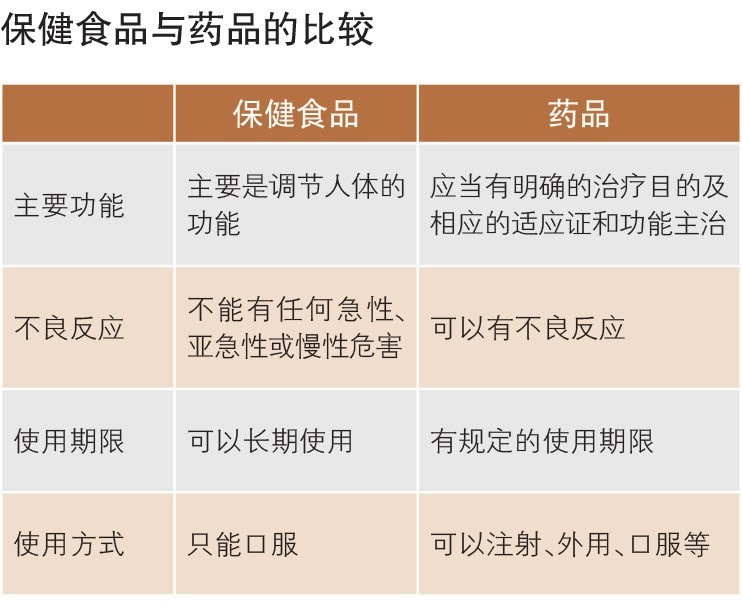 目前我國批準受理的保健食品的保健功效有27種,包括增強免疫力、輔助降血脂、輔助降血糖、抗氧化、輔助改善記憶、緩解視疲勞、促進排鉛、清咽、輔助降血壓、改善睡眠、促進泌乳、緩解體力疲勞、提高缺氧耐受力、對輻射危害有輔助保護功能、減肥、改善生長發育、增加骨密度、改善營養性貧血、對化學性肝損傷有輔助保護作用、祛痤瘡、祛黃褐斑、改善皮膚水分、改善皮膚油分、調節腸道菌群、促進消化、通便、對胃黏膜損傷有輔助保護功能等,這些均沒有任何治療疾病的作用。