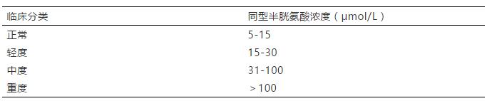 表1 高同型半胱氨酸血癥臨床分類與定義