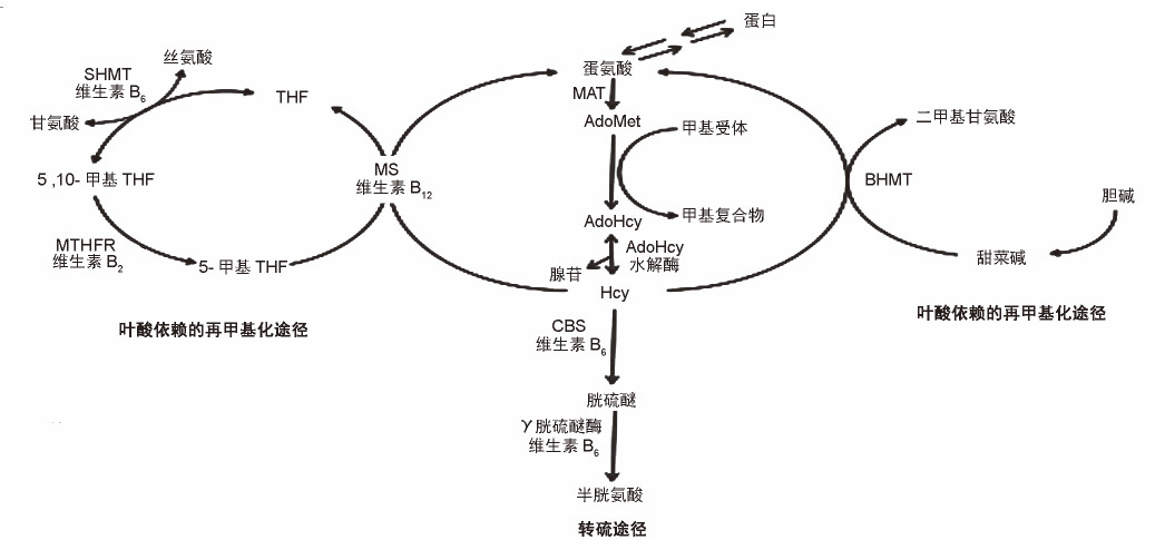 注:Hcy:同型半胱氨酸;THF:四氫葉酸酯