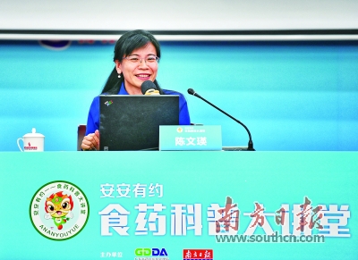 4月1日下午,廣東省藥品監督管理局和南方日報社聯合主辦的“安安有約——食藥科普大講堂”第二十四期在廣州南方傳媒大廈舉行。本期活動邀請到南方醫科大學第三附屬醫院藥學部主任陳文瑛博士作題為《日常飲食對藥物的影響》的專題講座。