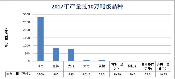 圖11 2017年,產(chǎn)量超過10萬噸的藥食兩用大品種(天地云圖大數(shù)據(jù))