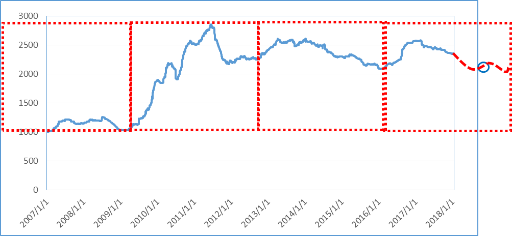 圖13 2007-2018年,中藥材綜合200指數(shù)運(yùn)行圖(中藥材天地網(wǎng))