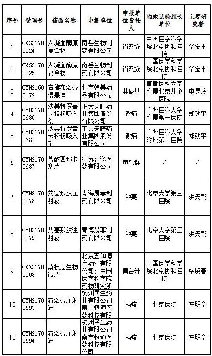 17個藥物臨床試驗(yàn)數(shù)據(jù)現(xiàn)場核查注冊申請目錄