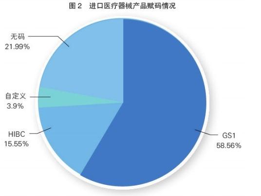 隨著全球醫療器械監管機構對UDI的高度關注,我國醫療器械行業對UDI的認知也不斷提升,醫療器械產品的賦碼比例逐步提高。值得注意的是,國產、進口醫療器械的賦碼率總體差異不大,賦碼產品約占80%,無碼產品約占20%。但國產醫療器械采用自定義編碼的現象比較普遍,約占30%,而進口醫療器械約占4%。