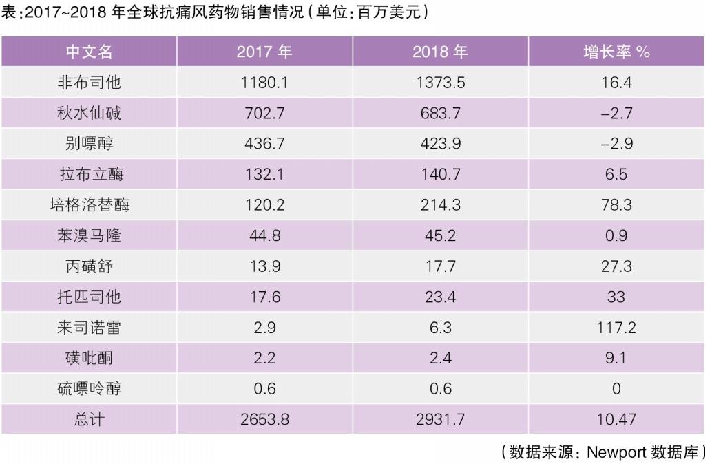 全球抗痛風藥物市場及研發情況