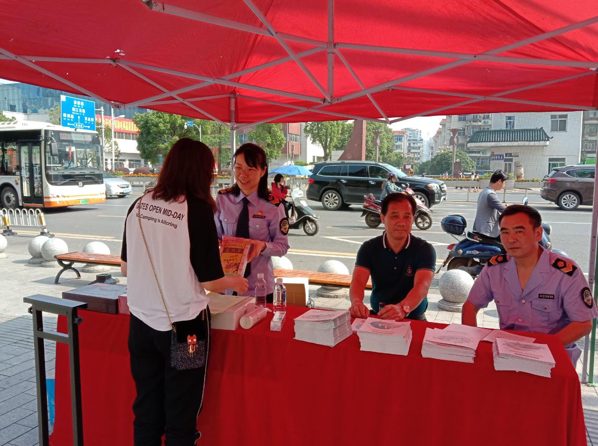 永州市市場監(jiān)督管理局監(jiān)管人員發(fā)放科普資料。