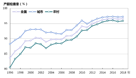 圖8 1996—2018年產前檢查率變化趨勢