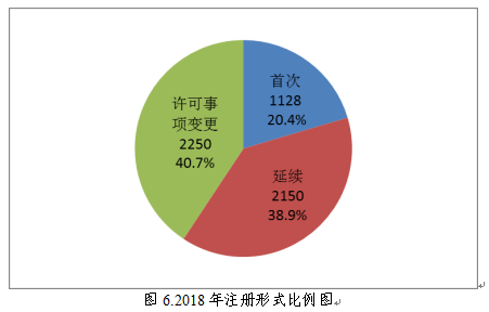 按照注冊(cè)形式區(qū)分,首次注冊(cè)1128項(xiàng),占全部醫(yī)療器械注冊(cè)數(shù)量的20.4%;延續(xù)注冊(cè)2150項(xiàng),占全部醫(yī)療器械注冊(cè)數(shù)量的38.9%;許可事項(xiàng)變更注冊(cè)2250項(xiàng),占全部醫(yī)療器械注冊(cè)數(shù)量的40.7%。注冊(cè)形式比例情況見圖6。