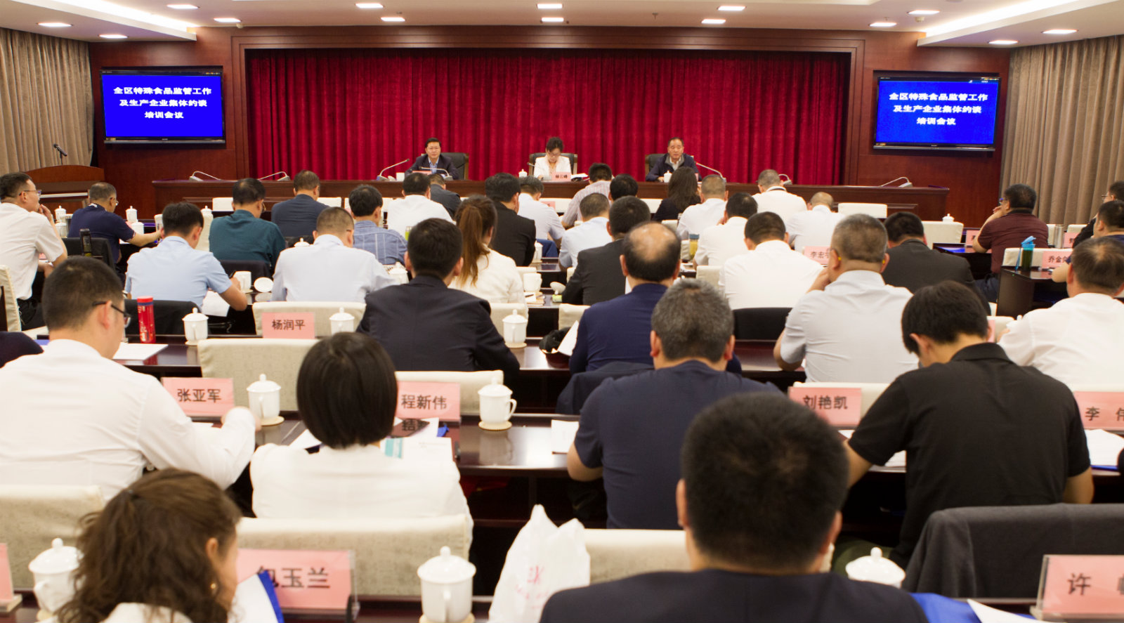 圖為內蒙古自治區市場監督管理局召開特殊食品監管工作及生產企業集體約談培訓會現場。楊燕/攝