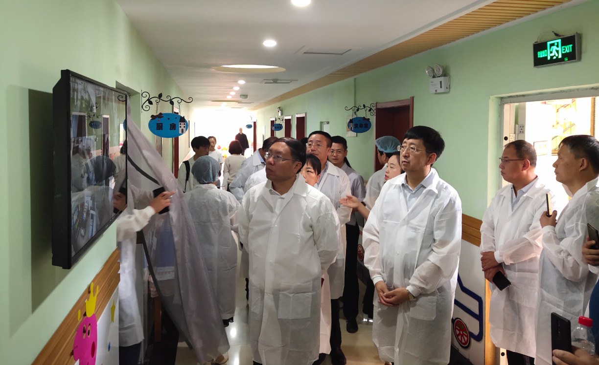 圖為晉中市校園食品安全現場推進會參會人員在左權縣星遼幼兒園實地參觀食品安全管理“明廚亮灶”運行情況。