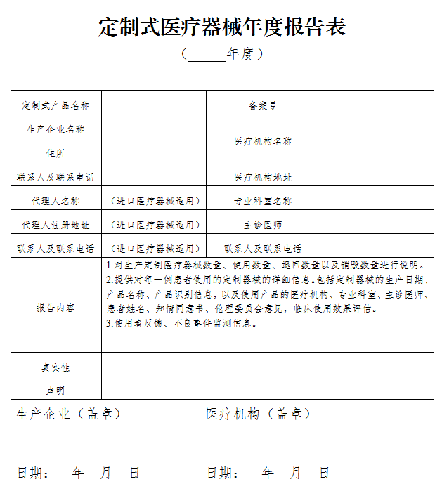 4.定制式醫療器械年度報告表
