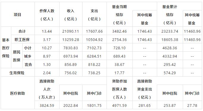 全年城鄉居民基本醫療保險基金收入6973.94億元,增長27.1%;支出6284.51億元,增長28.9%。年末累計結存4332.94億元。