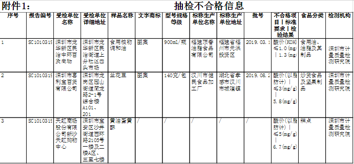 深圳市市場監督管理局2020年食品安全抽樣檢驗情況通報(第一期)