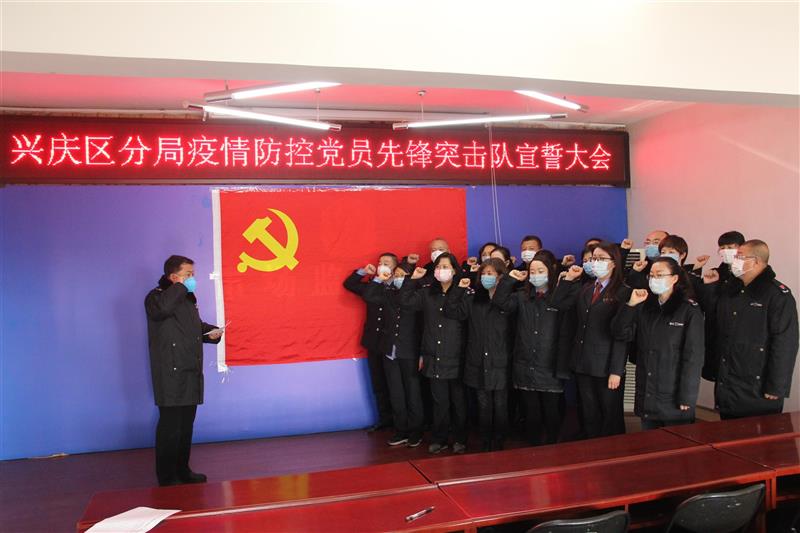 銀川市市場監(jiān)管局興慶區(qū)分局黨員先鋒突擊隊宣誓成立。