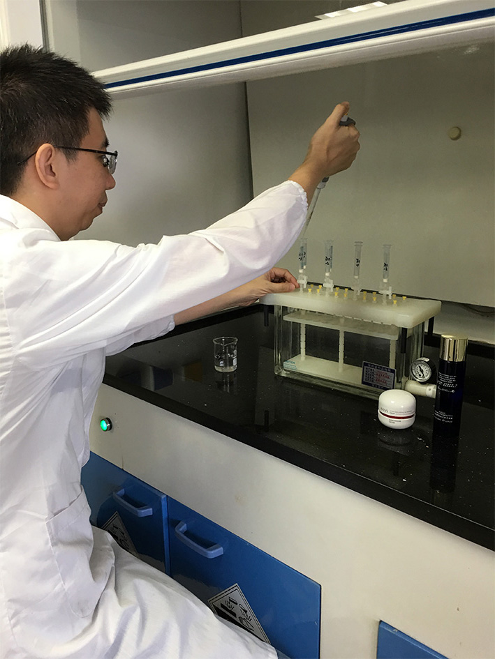 “近三年來,針對化妝品檢驗標準和檢驗方法存在的不足,化妝品檢驗室一直在進行各種探討和研究,并在核心期刊發表了多篇檢驗論文。”符策奕舉例說,通過建立液相色譜串聯質譜同時測定6類不同劑型化妝品中10種防腐劑的定性、定量方法,該所解決了原先采用液相色譜法、氣相色譜法、氣相-質譜聯用法等方法檢測化妝品中防腐劑含量時存在的專屬性不強或靈敏度不高等問題。