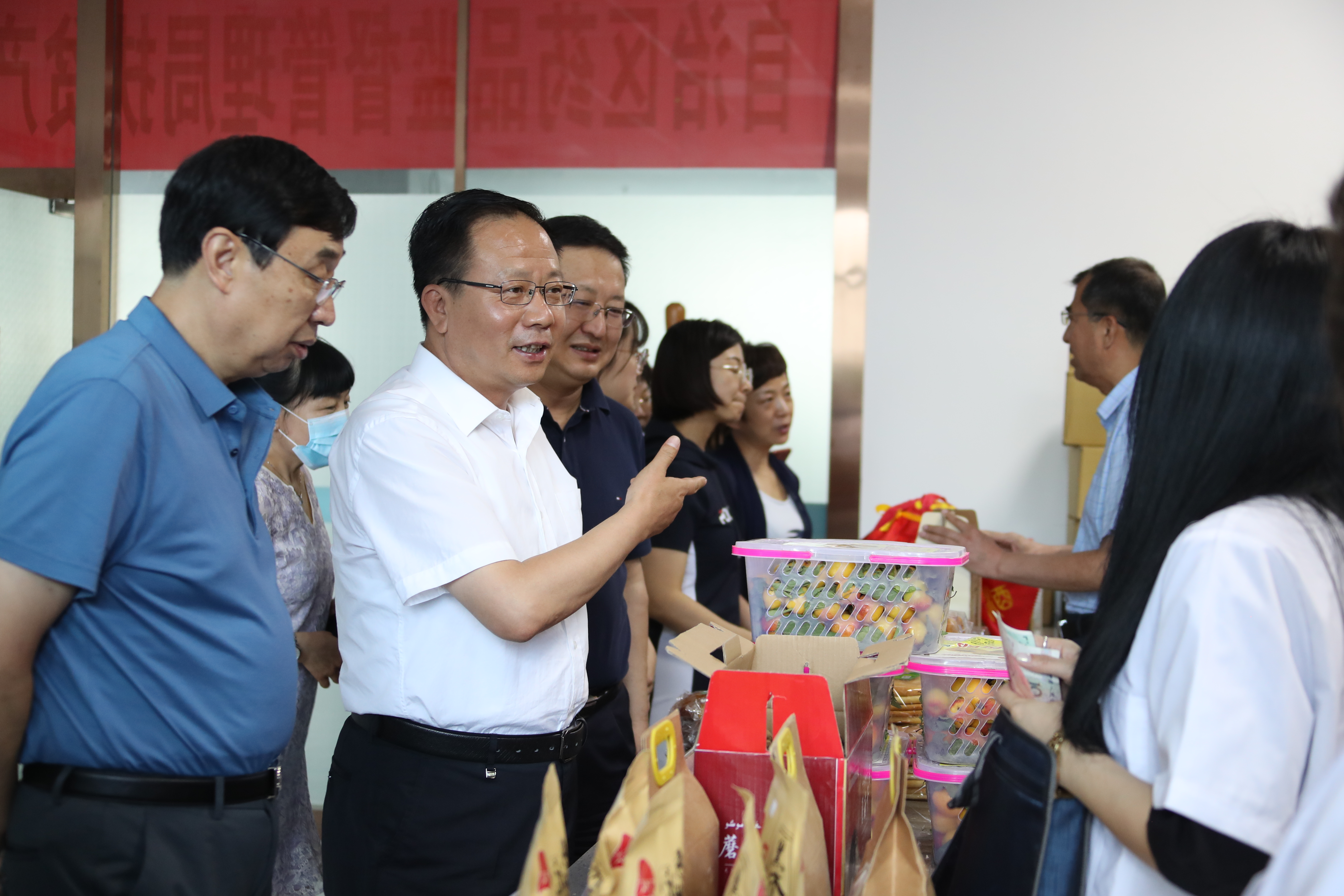 新疆維吾爾自治區藥監局黨組書記、局長張鈺祥帶頭消費。局黨組成員、副局長馬明輝等其他局領導也都來搶購,通過消費帶動當地農民脫貧。