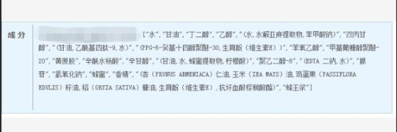 這些養膚油產品是不是真的有這么神奇,還是得從它們的成分開始研究。筆者選擇了三款比較有代表性的產品,在國家藥監局網站找到了成分表: