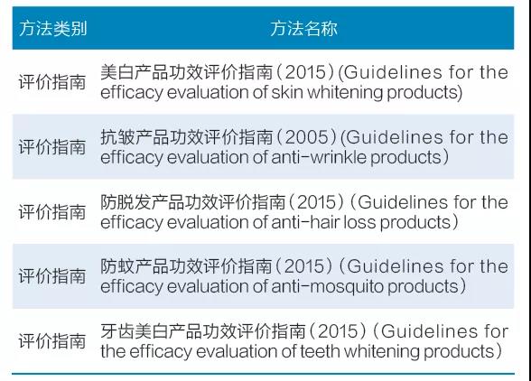 2011年7月由日本厚生勞動省發布的《化妝品功效范圍的修訂》將化妝品可宣稱的功效范圍限制為55種。日本化妝品工業聯合會(JCIA)自2008年起向行業發布《化妝品等適當廣告指南》,為化妝品廠商及經營者提供了非常詳盡的指導。日本化妝品學會(JCSS)也為行業制定了防曬、美白、抗皺功效評價指南和功效性化妝品安全性評價指南(見表5)。