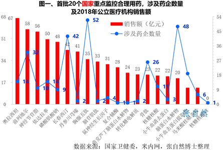 2019年7月1日,《第一批國家重點監(jiān)控合理用藥藥品目錄(化藥及生物制品)》正式落地,共有20個品種,但沒有中藥。這20個品種共涉及200多家企業(yè),2018年全國公立醫(yī)療機構(gòu)的銷售額高達650億元,其中神經(jīng)節(jié)苷脂、奧拉西坦、前列地爾、依達拉奉均超50億元。