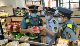 圖為6月27日,于都縣市場監管局執法人員在于都北服務區一家超市內檢查是否存在經營過期食品問題。