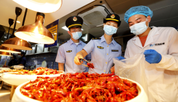 圖為8月2日,淮北市市場監督管理部門工作人員在夜市餐飲街區現場取樣。