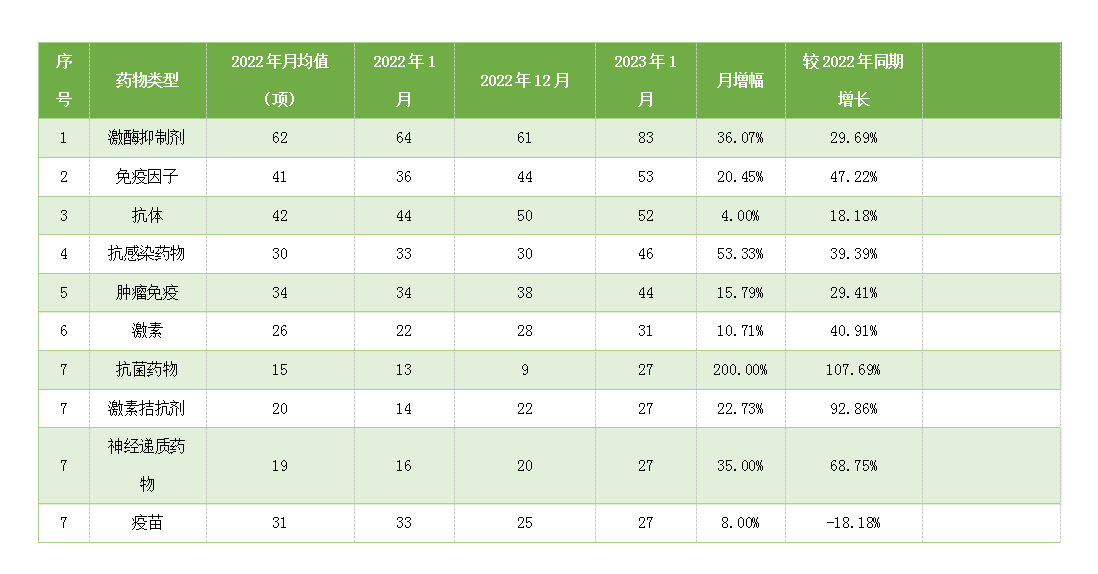 2023年1月份抗菌和抗感染藥物新開臨床試驗數量大幅增長