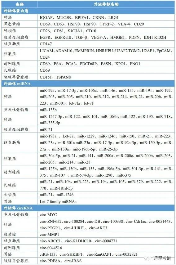 外泌體已被證明有望用作許多疾病的診斷和預后生物標志物,包括乳腺癌、泌尿道癌、肺癌、胃癌、肝癌、結直腸癌、卵巢癌等癌癥,以及帕金森病、阿茨海默病等中樞神經系統疾病,并且關于外泌體作為診斷工具的研究正在迅速擴展到其他疾病。
