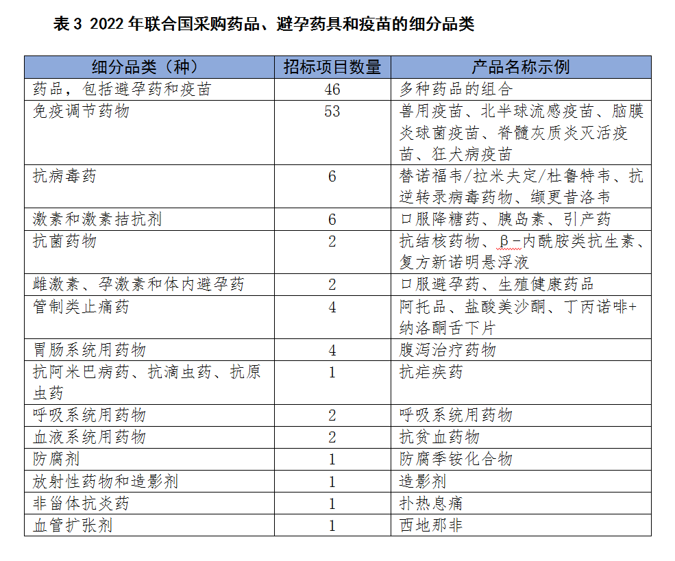 總體來說,2021—2022年,中國醫藥產業在聯合國采購的舞臺上大放異彩,既有足夠供給全球基礎醫療物資的產能,也有達到國際標準的研發能力。2021年,3款中國自主研發的新冠病毒疫苗通過WHO EUL(緊急使用清單)認證,被聯合國機構采購,即為例證。