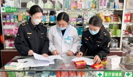 圖為該局執(zhí)法人員在一家藥店內(nèi)檢查感冒用藥。