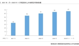2021年1月—2025年11月,我國(guó)共批準(zhǔn)280余個(gè)創(chuàng)新醫(yī)療器械上市。創(chuàng)新醫(yī)療器械產(chǎn)品年獲批數(shù)量從2021年的35個(gè)增長(zhǎng)至2024年的65個(gè),復(fù)合年均增長(zhǎng)率為22.91%(詳見圖)。
